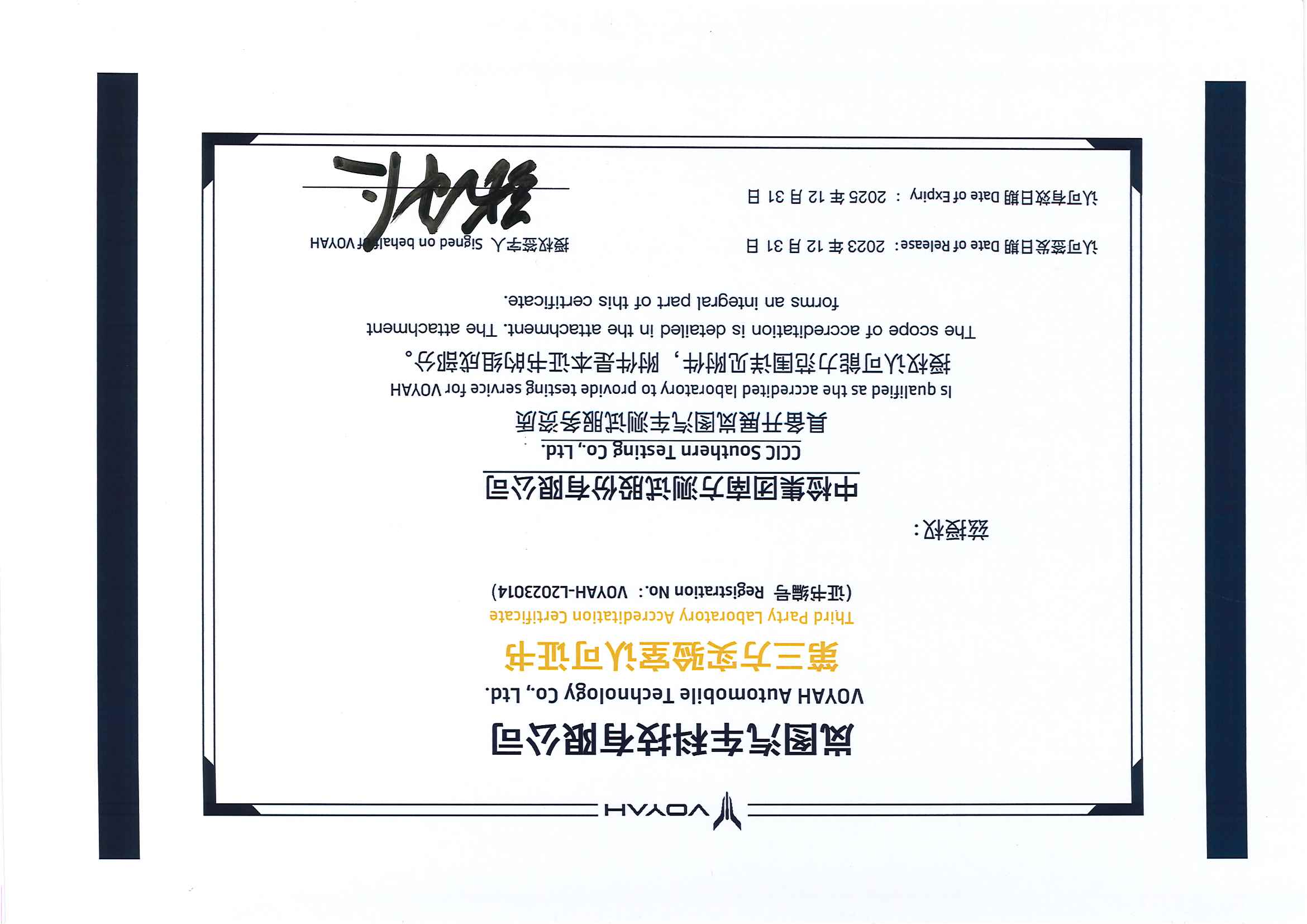 比亚迪汽车第三方实验室认可证书