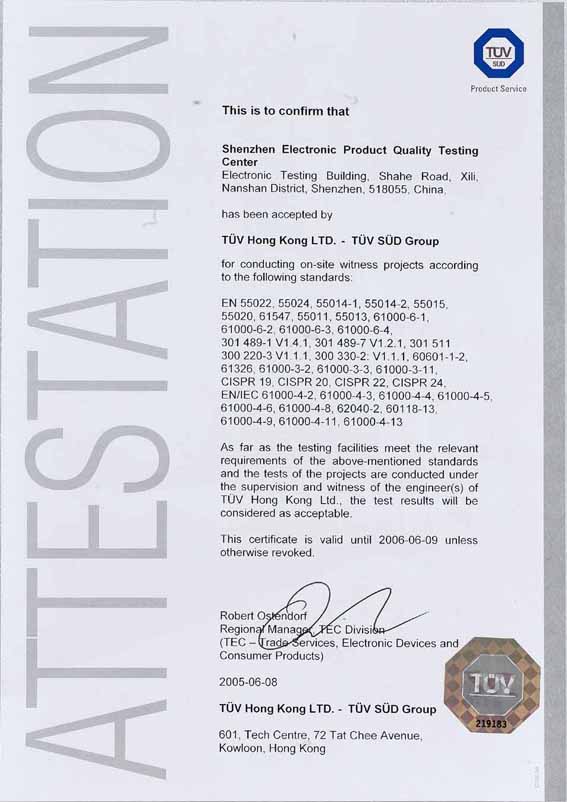 德国TUVps认可实验室(EMC)