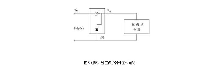 手机等便携式电子产品的电路保护(图5)    泰科电子公司的PolyZenTM元件就是常用的过流、过压保护器件。